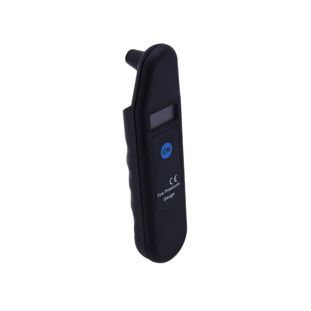 Прибор выполнен в корпусе из прочного черного пластика. Чтобы измерить давление в колесе, следует с усилием прижать штуцер к ниппелю шины. Значения давления отобразятся на цифровом ЖК дисплее. Давление измеряется в кг/кв.см (атм). Предел измерения – от 0 до 10 атм.